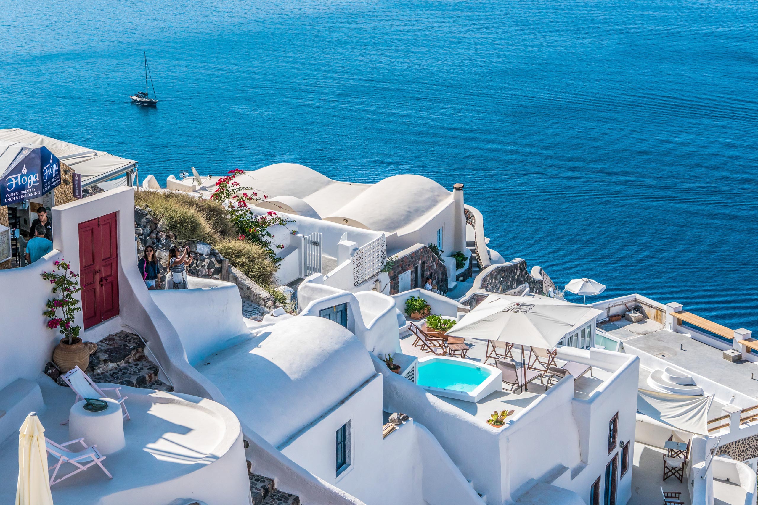Palmeria Hotel is one of the most recognizable coastal resorts located in fancy Perissa area of Santorini. Our assets are first-class rooms with breathtaking views, excellent service and genuine hospitality. We are a home for your unforgettable time and best camera pictures!